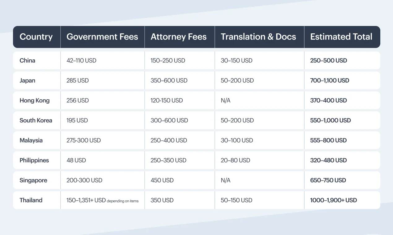 Many applicants worry about the true cost of registering a trademark in Asia. Most of this anxiety comes from a lack of transparency, because every jurisdiction uses its own fee model, its own document rules, and its own legal requirements.