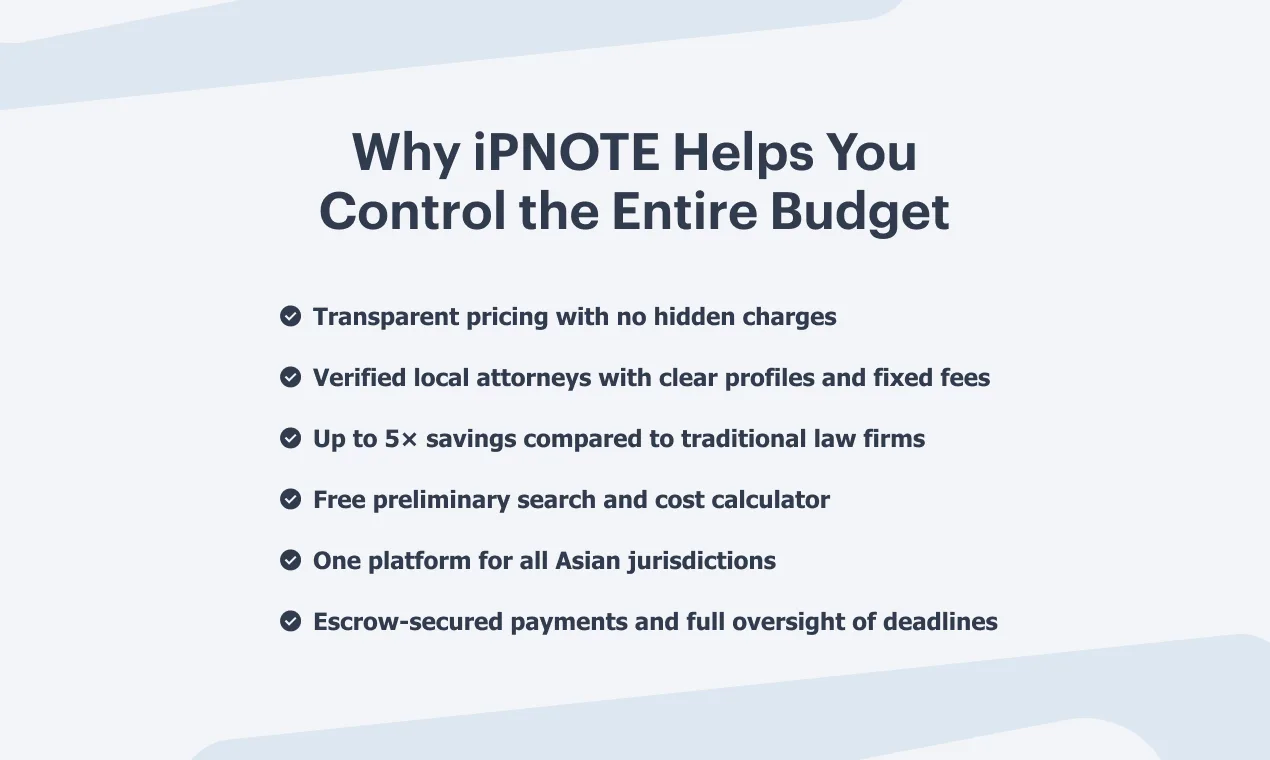 Trademark registration across Asia becomes predictable when every cost is visible upfront. You don’t need deep IP expertise to understand the structure, you just need access to transparent numbers, verified providers, and a reliable system that keeps all steps and fees under control.