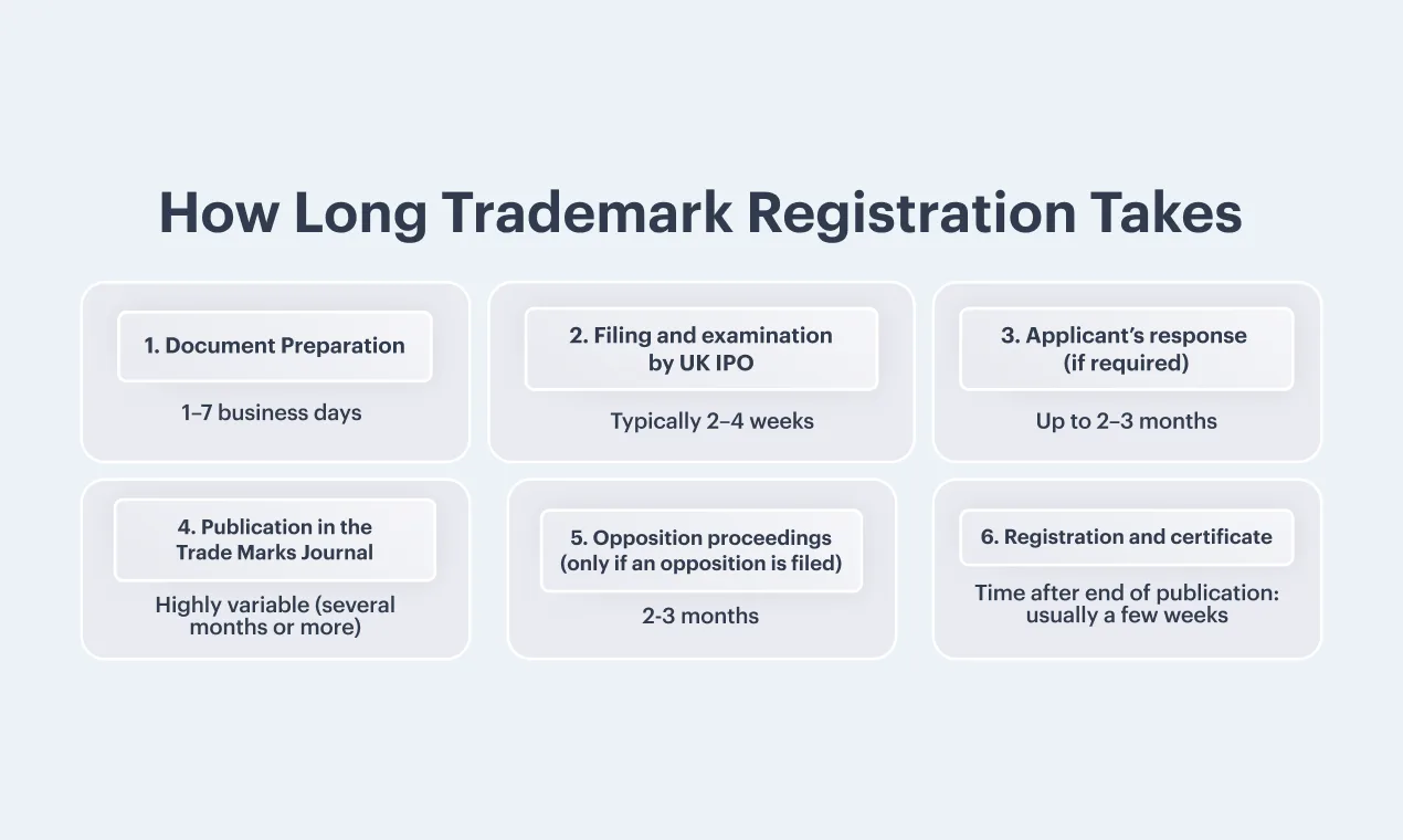 Time: up to 2–3 months including preparation and UK IPO’s follow-up review.