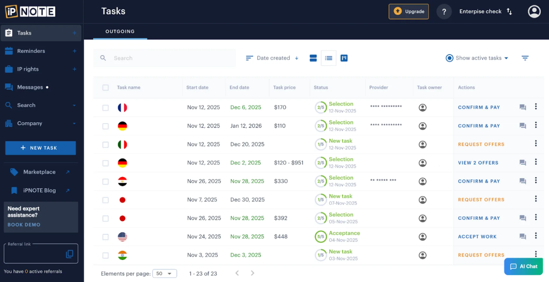 With iPNOTE, you can renew a patent in minutes and keep your global IP portfolio synchronized. The platform provides full visibility, reduces costs, and eliminates the need for manual tracking.
