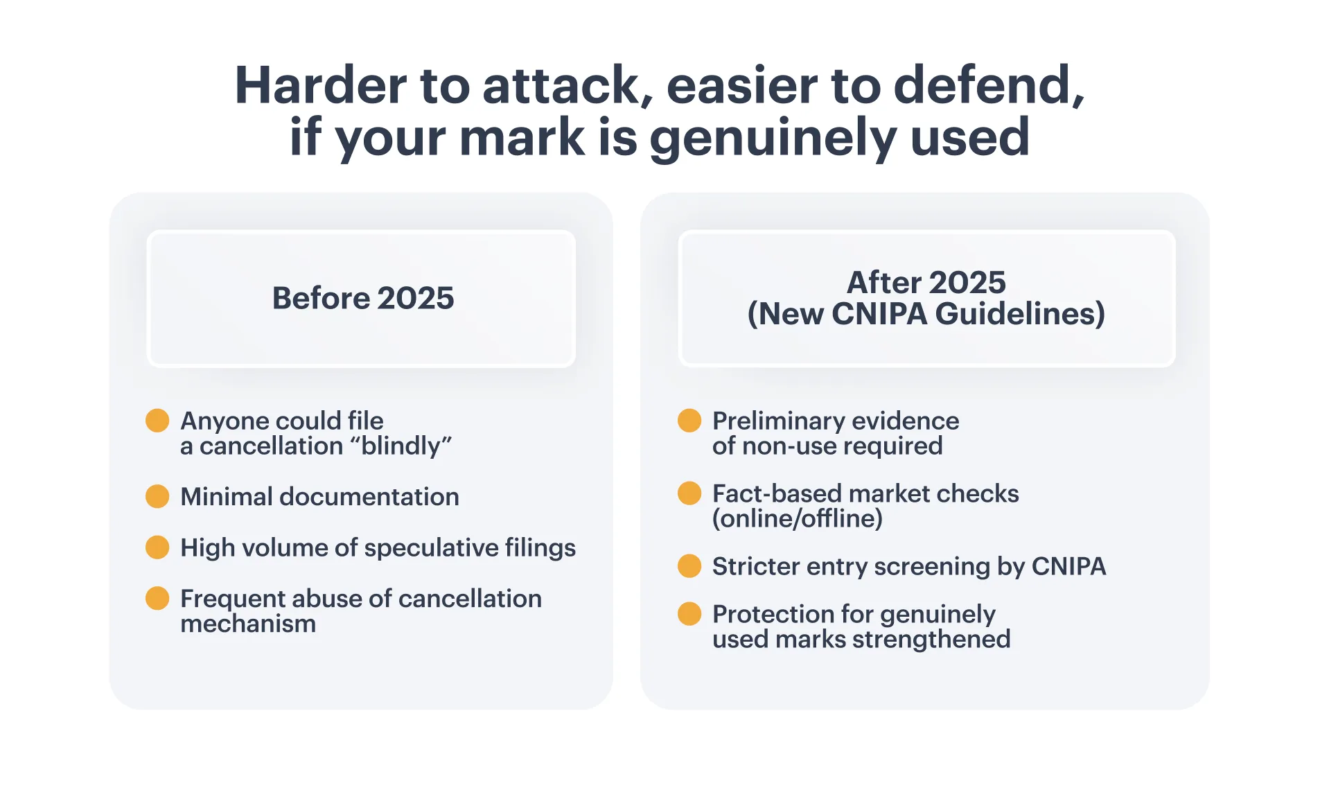 In short, the new 2025 guidelines reshape the balance between enforcement and protection: it has become harder to attack, but easier to defend — provided the trademark is genuinely in use.
