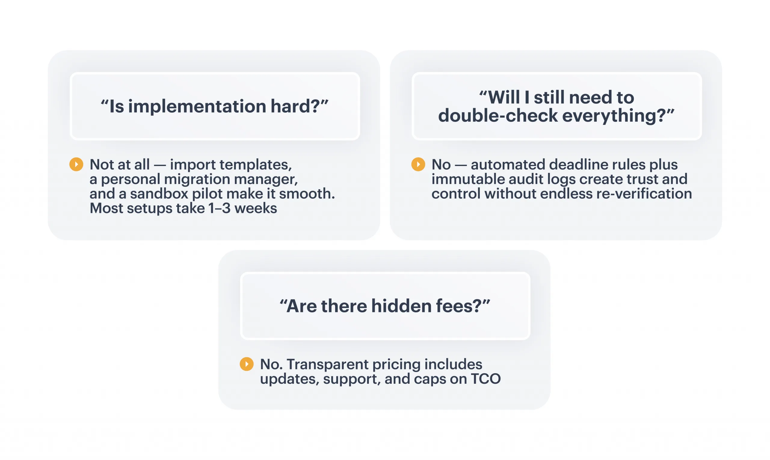 A well-planned migration roadmap with a pilot mode and clear validation process is also essential, as is transparent pricing with ongoing support and updates. For a deeper look at what to consider during a software demo, read our article.