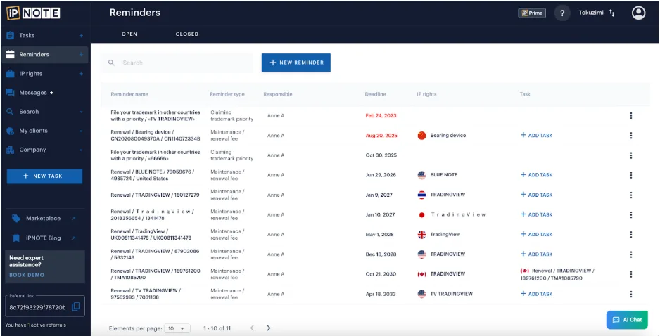With a trademark docketing system, this entire routine transforms. All trademarks, deadlines, and documents are consolidated in one view. The software automatically imports statuses directly from trademark offices, calculates deadlines using built-in jurisdictional rules, and sends intelligent notifications across multiple channels. Managers can instantly see a full record of actions, responsible team members, and upcoming tasks. Instead of hunting for scattered information, they start their day with a quick dashboard check, confident that everything is under control.